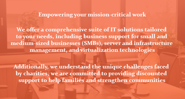 We have seen how confusing and expensive IT services can be a burden, especially for smaller businesses, charities, and home users. Our passion lies in helping these groups achieve their goals by offering affordable, customized solutions without unnecessary complexities.
